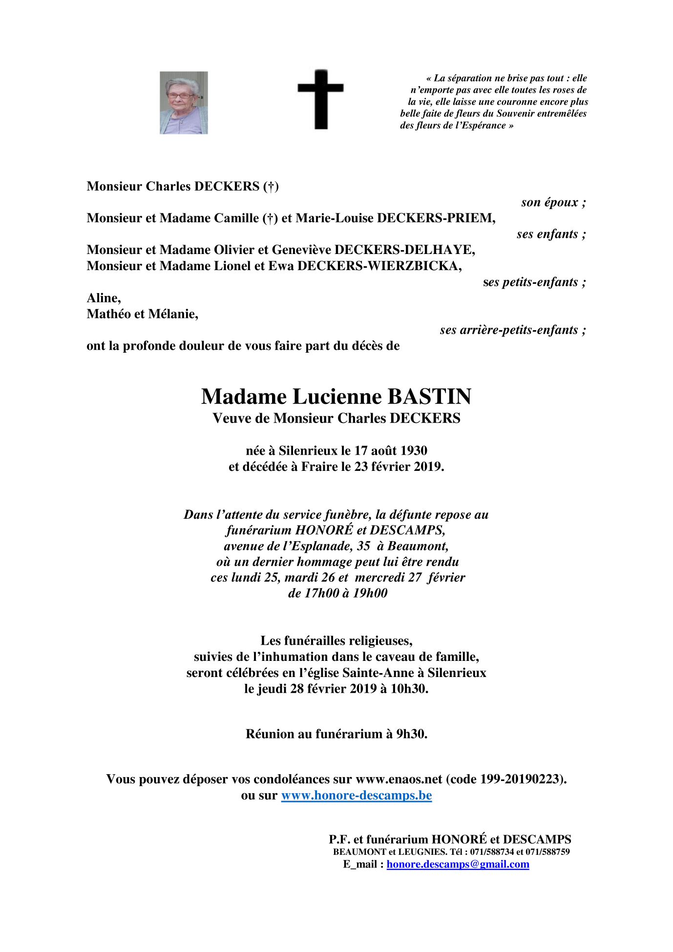 Madame Lucienne BASTIN