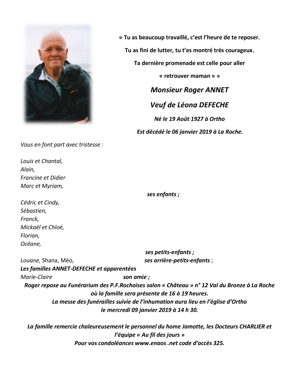 Overleden te La Roche-en-Ardenne (6980) op zondag 6 januari 2019 op 91-jarige leeftijd