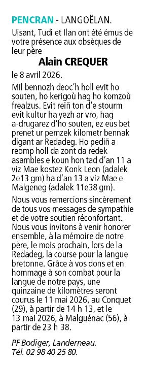 Died in Landerneau (29800, France) on 02 April 2026 at the age of 61 years