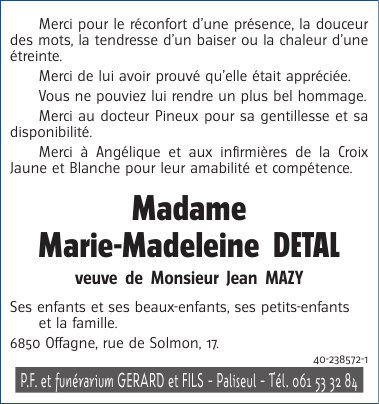 Madame Marie-Madeleine DETAL