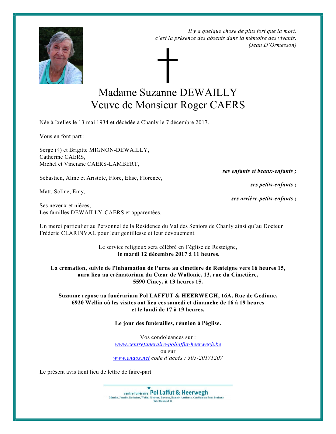 Overleden te Chanly (6921) op donderdag 7 december 2017 op 83-jarige leeftijd