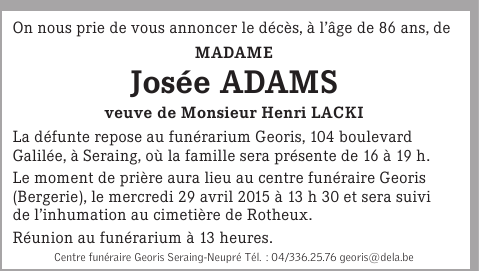 Died in Neupré (4120) on 25 April 2015 at the age of 86 years