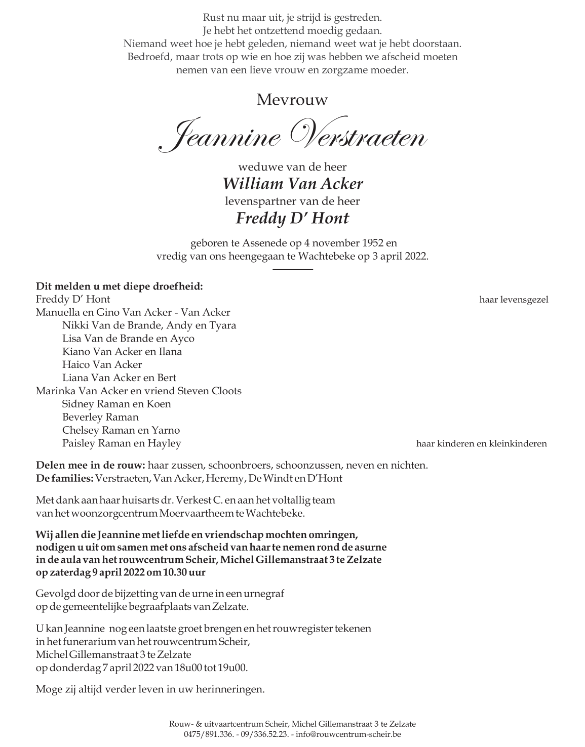 Died in Wachtebeke (9185) on 03 April 2022 at the age of 69 years