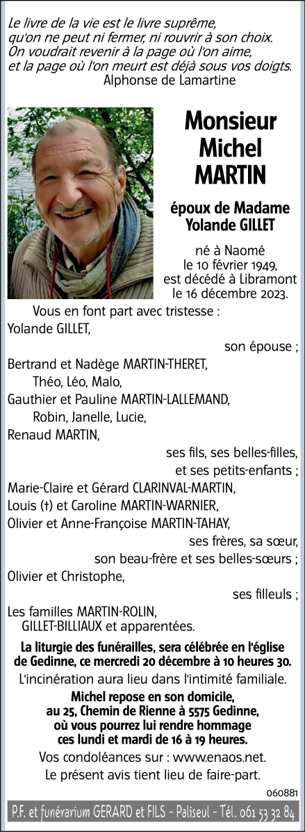 Died in Libramont (6800) on 17 December 2023 at the age of 74 years