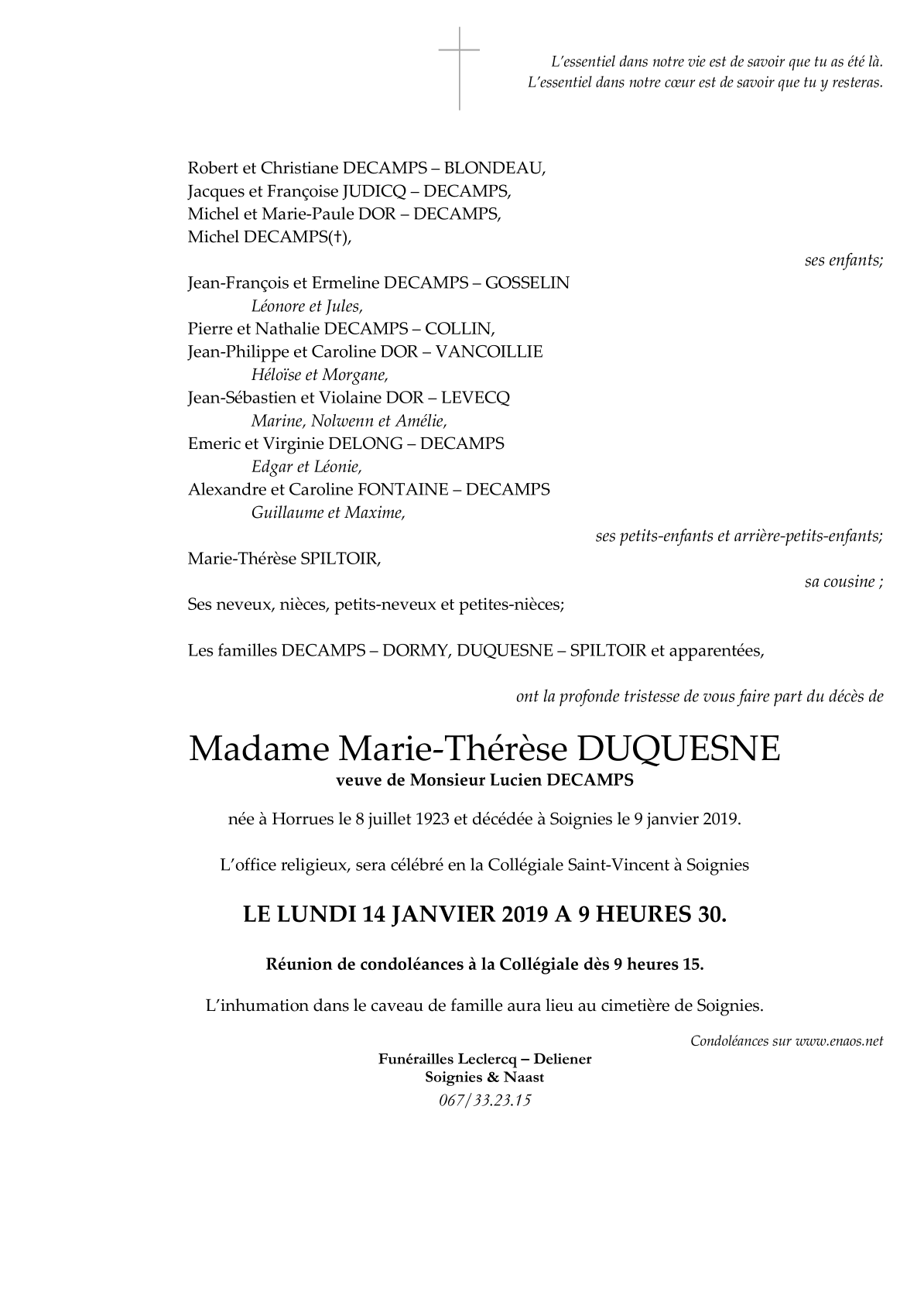 Madame Marie DUQUESNE