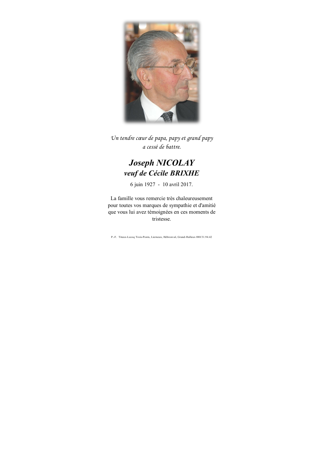 Overleden te Vielsalm (6690) op maandag 10 april 2017 op 89-jarige leeftijd
