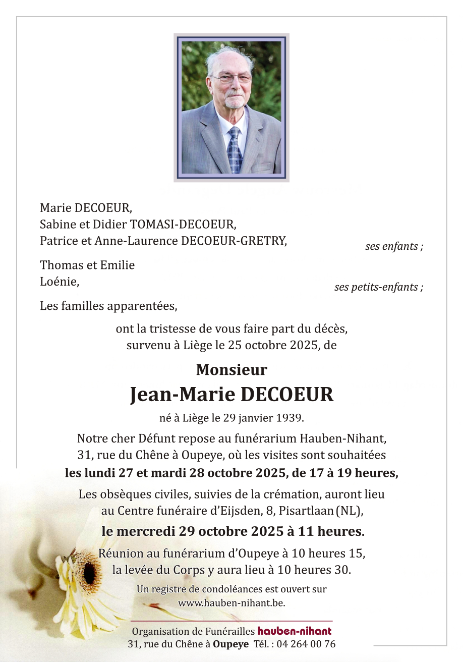 Décédé à Liège (4000) le samedi 25 octobre 2025 à l'âge de 86 ans