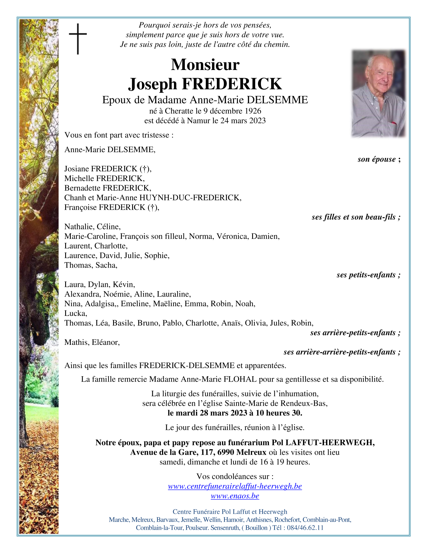 Fallecido en Namur (5000) el viernes, 24 de marzo de 2023 a la edad de 96 años