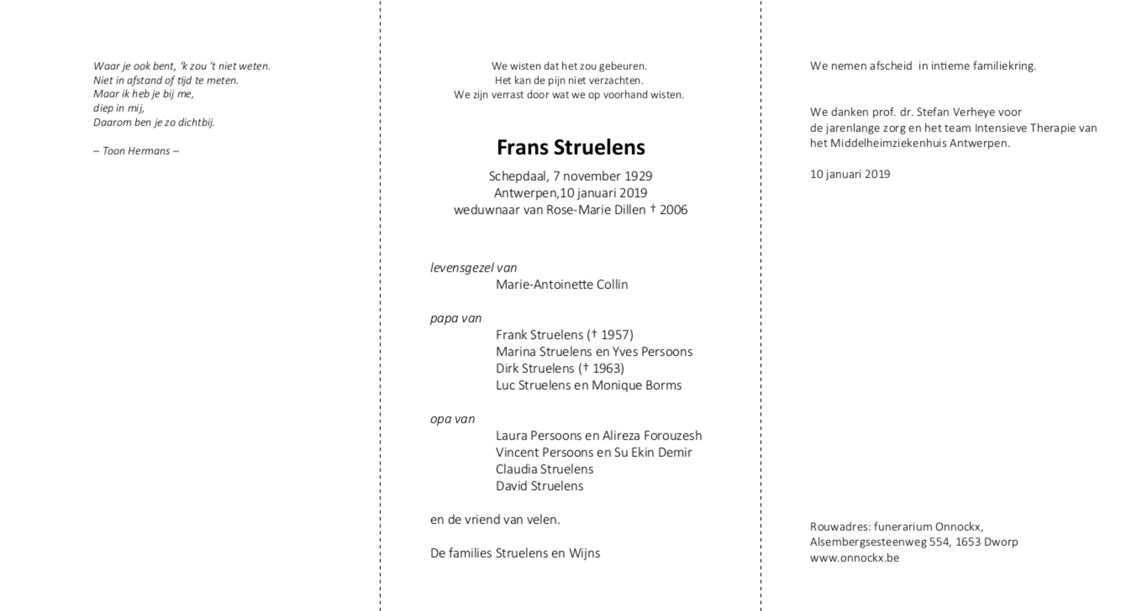 Décédé à Antwerpen (2020) le jeudi 10 janvier 2019 à l'âge de 89 ans