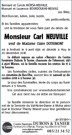 Died in Huy (4500) on 20 December 2018 at the age of 82 years