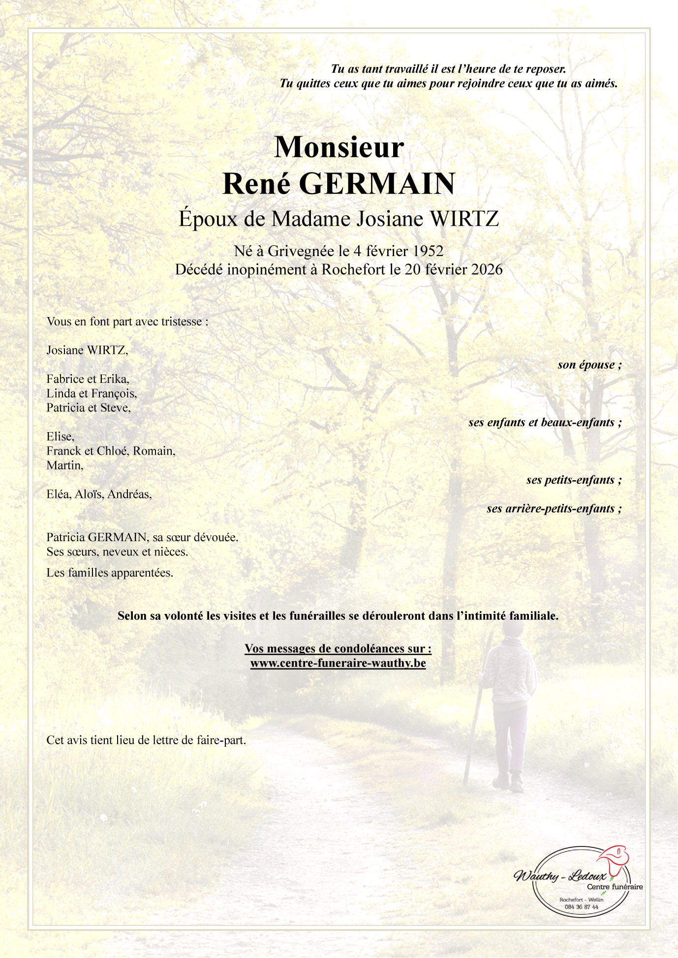Fallecido en Rochefort (5580) el viernes, 20 de febrero de 2026 a la edad de 74 años