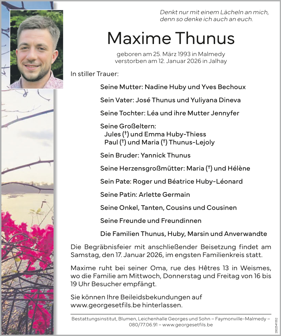 Décédé à Jalhay (4845) le lundi 12 janvier 2026 à l'âge de 32 ans