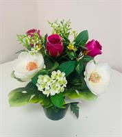 Pot de chrysanthèmes artificielles (couleur selon stock)