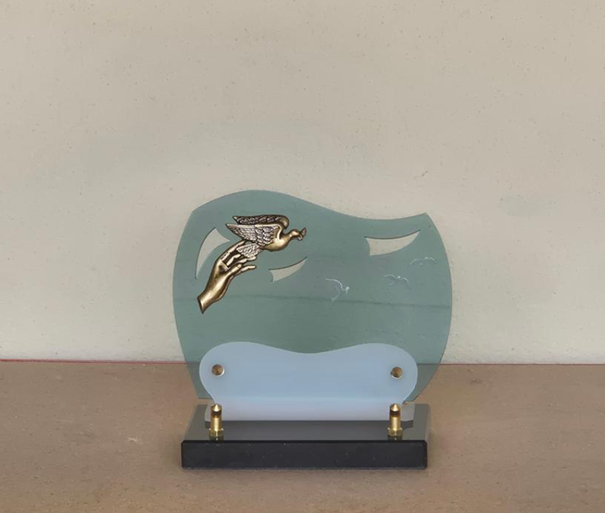 Plaque altuglas motif colombe (dimension 17x18) - 2 inter à choisir parmi notre sélection d’inters de plus de 100 textes. avec lien de parenté, d’amitié et de message de regret. (ex: A mon Papa, A notre Ami, Souvenir, etc...)