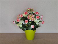 Fleur composition artificiel en pot couleur jaune, blanc, violet