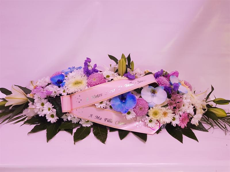 Photo non contractuelle | DESSUS DE CERCUEIL TAILLE 2 TONS PASTEL Dessus de cercueil, tons pastel, longueur 1,30 cm