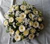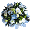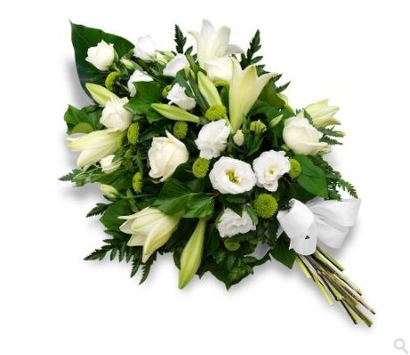| Sympathie Gerbe piquée composée de fleurs blanches et vertes.