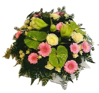 | Raquette GERBERA Jolie raquette composé de gerberas et roses blanches.