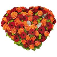 Cœur multi fleurs coloré avec feuillage et fleurs de saison - Dimensions env. 40 x 30 cm -
