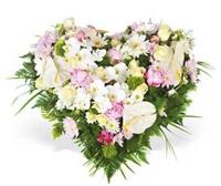 Cœur multi fleurs blanc avec feuillage et fleurs de saison - Dimensions env. 40 x 30 cm -