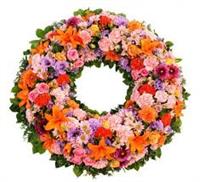 Couronne colorée de fleurs de saison avec feuillage - Diamètre env. 50 cm -