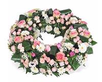 Couronne pastel de fleurs de saison avec feuillage - Diamètre env. 50 cm -