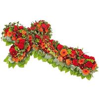 Croix colorée de fleurs de saison avec feuillage - Longueur 70 cm -