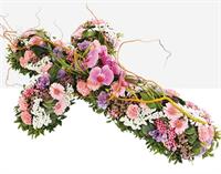 Croix pastel de fleurs de saison avec feuillage - Longueur 70 cm -
