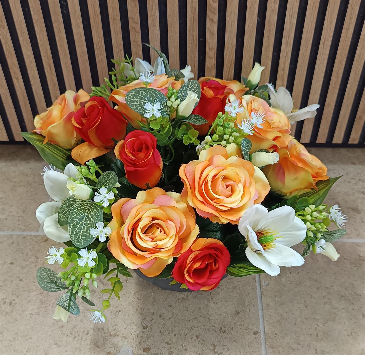 Jardinière de roses en tergal de 35 de large par 20 cm de haut