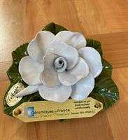 Rose blanche en céramique, résiste au gel
