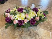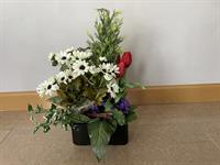 Composition de fleurs en tergal de 36 x 59 cm de haut