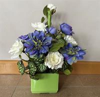 Composition de fleurs tergal dans jardinière lestée de 50 de large par 25 cm de haut