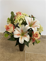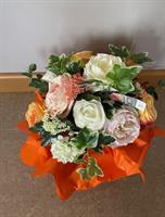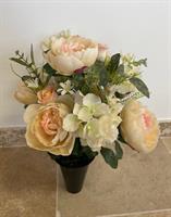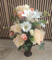 Bouquet de fleurs en tergal ton saumon crème de 35 cm de diamètre et 45 cm de haut à mettre dans un vases ou à poser sur socle