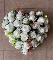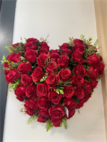 Roses rouges en tergal sur mousse forme coeur de 50 x 40 cm de haut