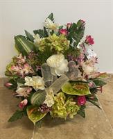 Composition de fleurs en tergal de 55 de large par 50 cm de haut