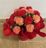 Bouquet d'oeillets en tergal diamètre 28 cm par 33 cm de haut