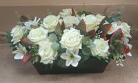 Jardinière de fleurs blanches en tergal de 52 cm de long et 30 cm de haut