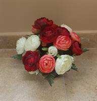 Coupe de fleurs en tergal (renoncules) de 22 de diamètre et 17 cm de haut